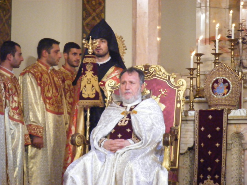 Zelebriert hat ein Priester; doch zur Opferung ist der Kathołikos in einer Prozession eingezogen. Wenn ich im Itinerarium Egeriae (= Aetheriae = Silviae) gelesen habe, wie im Jerusalem des späten IV. oder frühen V. Jahrhunderts der Bischof nach dem Gottesdienst die Gläubigen einzeln segnet, habe ich mich gefragt, wie das denn durchzuführen sei. Hier erlebe ich es: alle drängen sich beim Auszug zu ihm, er legt allen die Hand auf, so auch mir.