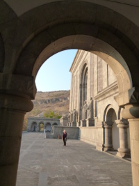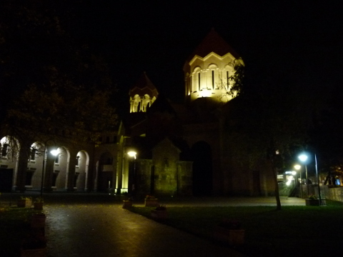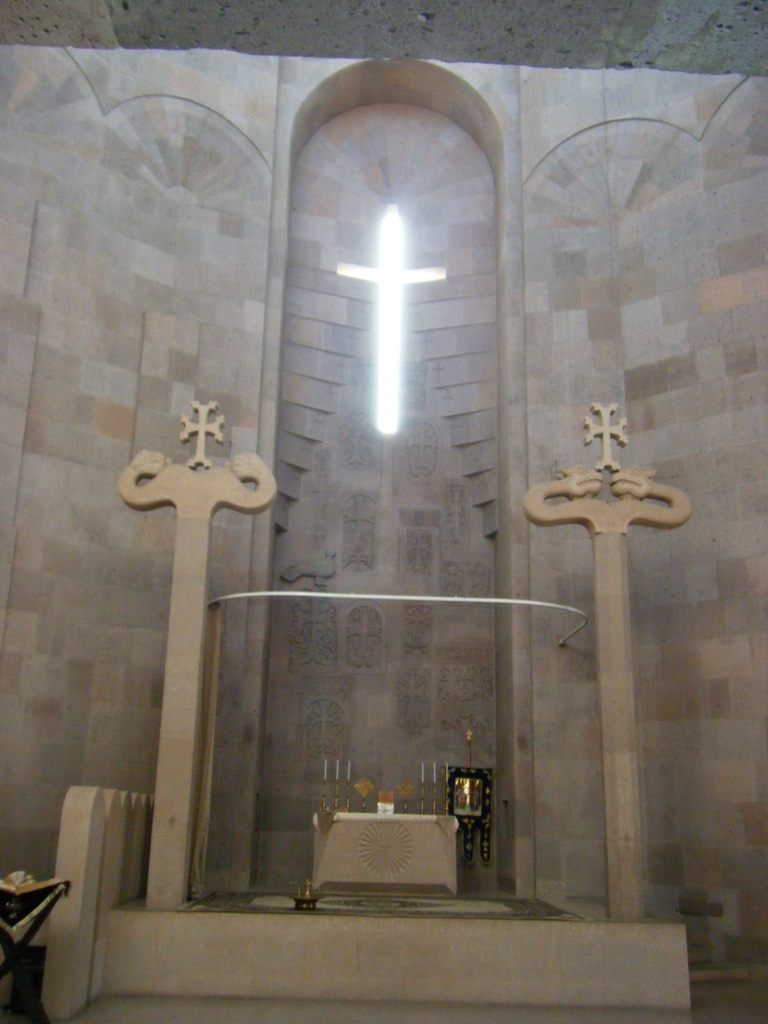 In Armenien hat es eine Russifizierung nie gegeben, die gregorianische Kirche blieb immer untrennbar mit dem armenischen Volk verbunden. Natürlich gibt es hier keine Ikonostasetten wie in georgischen Taxis (Bilderverehrung ist hier ja unbekannt); doch auch hier kann man sich, wenn der Fahrer sich bekreuzigt, umsehen, wo in der Umgebung die Kirche ist.
