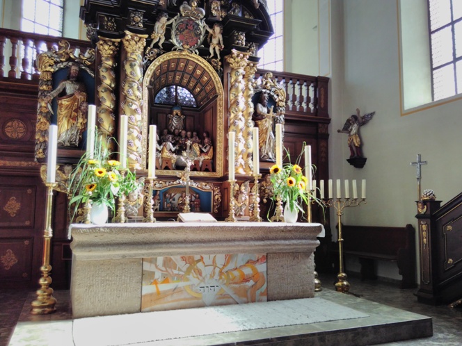 Dann war der Institutio generalis des neuen Missale Romanum (303) zufolge «ein anderer feststehender Altar zu errichten, der künstlerisch gestaltet ist». So wurde der Chorraum seit 1975 umgestaltet, mit einem neuen „Kreuzaltar“ (über dem freilich weder ein Triumphbogenkreuz noch ein Hängekreuz zu sehen ist).
